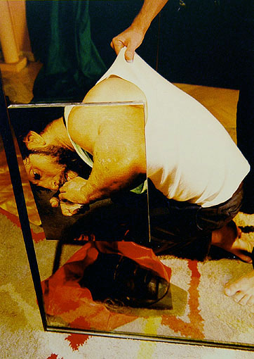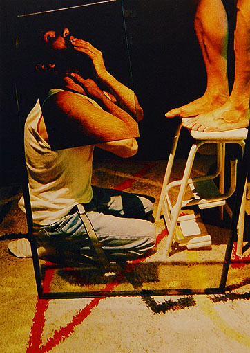 | Serie ORESTES (1997) | El deseo era tan fuerte que fue poblando la soledad de su carne de tatuajes mutantes, imperativos anuncios de sus ganas enormes de otro hombre a su lado que diera sentido con sus dientes a ese anhelo irrefrenable de ser tan sólo carne, el ansia incontenible de ser únicamente el objetivo final del beso, el arañazo, el amor o el olvido, la posesión, el odio, el lametón o el llanto de ese otro ser, semejante a si mismo, a quien, como al mejor postor, sed estaba ofreciendo con vehemencia. (Fragmento de 'El poder invencible del deseo' introducción del catálogo ORESTES por José Martínez Calvo) | |||||||||||||||||||||||||||||