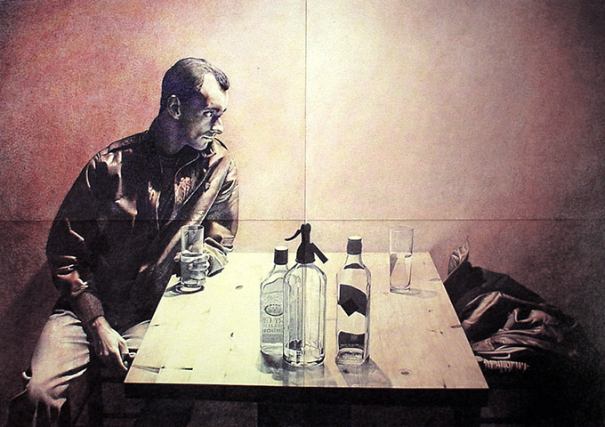 EN EL VASO VACIO DONDE SE HA DERRETIDO LENTAMENTE EL AMOR 1983 Lápiz / Cartón Daler teñido - Pencil / Tinted Daler board - 106x75 cm.